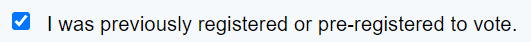 IMPORTANT Be sure to check the "I was previously registered or pre-registered to vote" checkbox and fill out your old voter registration information. You can confirm your old voter registration information by checking if you're registered at your old address.